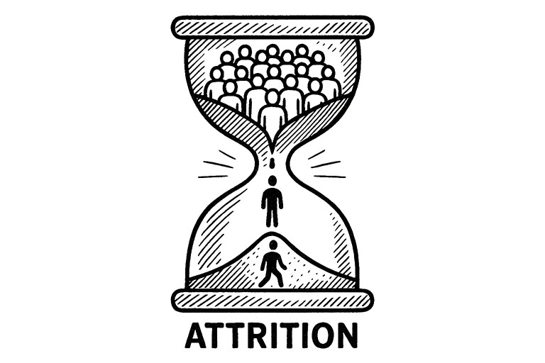 Attrition is het percentage klanten dat stilletjes verdwijnt—zonder opzegging, zonder klacht, maar simpelweg door te stoppen met gebruiken, reageren of terugkomen.