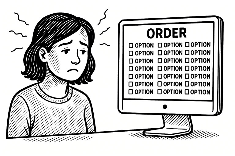 Elke keuze kost cognitieve energie. Hoe langer de lijst, hoe lager de motivatie. Denk aan klanten die afhaken bij een overvolle productpagina of een wirwar aan leveropties.