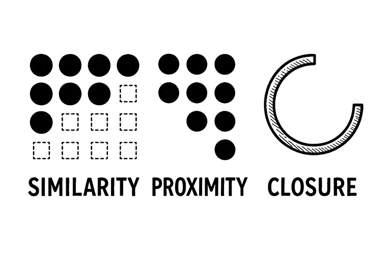 Gestalt Principles komen uit de psychologie van perceptie. Ze beschrijven hoe mensen patronen herkennen en visuele elementen ordenen.