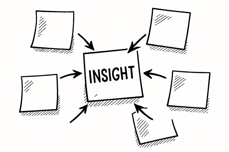 Insights zijn geen onderzoeksresultaten of feiten — het zijn betekenisvolle observaties die tot creativiteit, ontwerp of strategie leiden. Een goede insight verrast én voelt direct logisch.