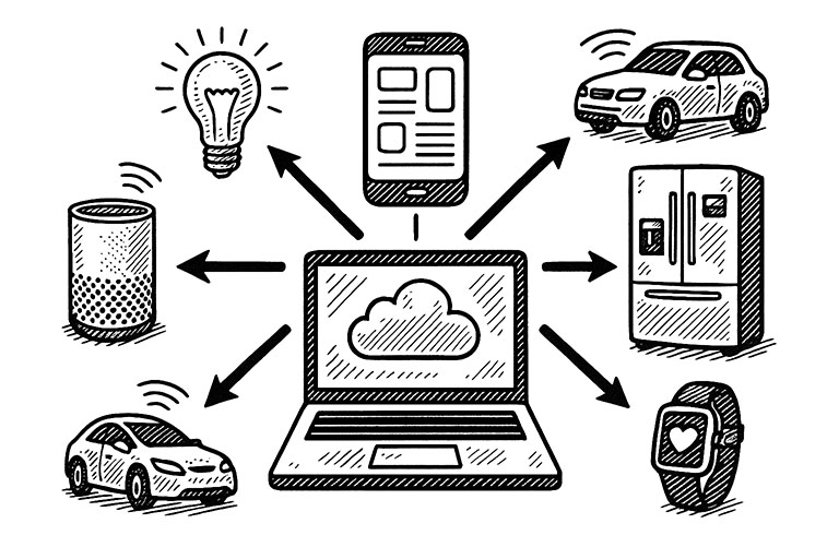 Denk aan een printer die automatisch nieuwe cartridges bestelt, of een auto die zelf een onderhoudsafspraak plant.